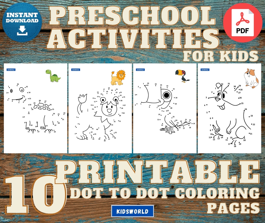 Preschool activity | After school activity | Gift Dot to dot coloring for children | 10 Dot to dot coloring printable pages for Kids | PDF